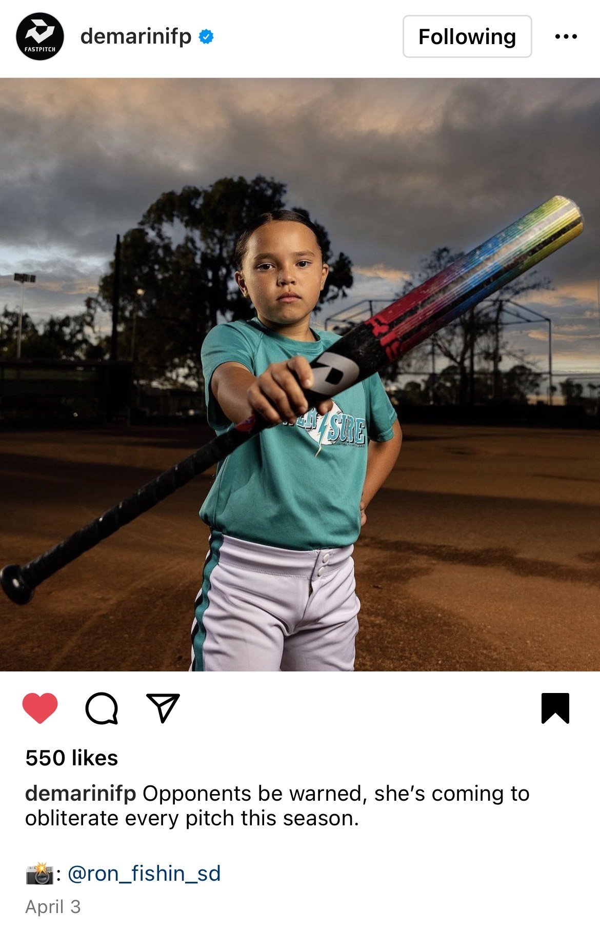 Instagram captions I wrote for Demarini Baseball and Fastpitch accounts.